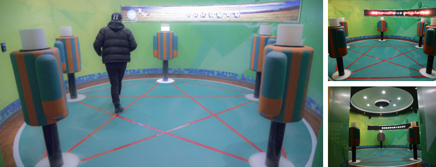項目名稱:臨淄足球博物館                       完工時間:2015年   展示內容:帶球過桿   交互形式:光感交互