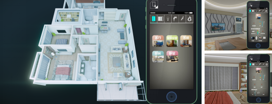 金螳螂自主開發的智慧家居系統,可通過手機平臺中實現對家居的空調、電視、音響、監控、安全門、窗、熱水器、冰箱等的控制。