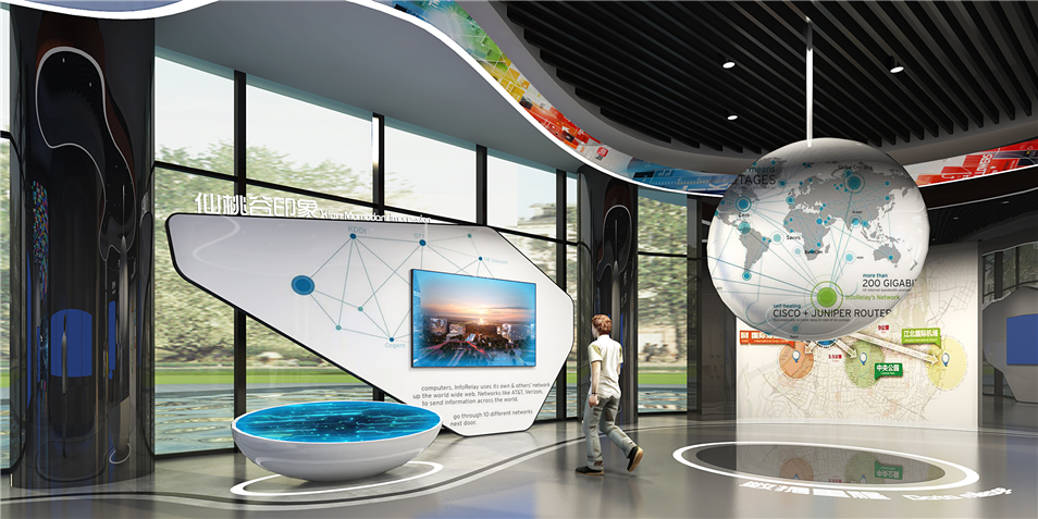 重慶仙桃國際數(shù)據(jù)谷展示體驗中心,展廳主要布局了序廳、仙桃印象、規(guī)劃宏圖、創(chuàng)新平臺、綜合產(chǎn)品體驗區(qū)、幻彩走廊、產(chǎn)業(yè)洽談推進區(qū)、影院共八大主題展區(qū),宣傳數(shù)據(jù)谷規(guī)劃理念和成果,是接待來訪領導、企業(yè)、嘉賓的高科技會客廳。