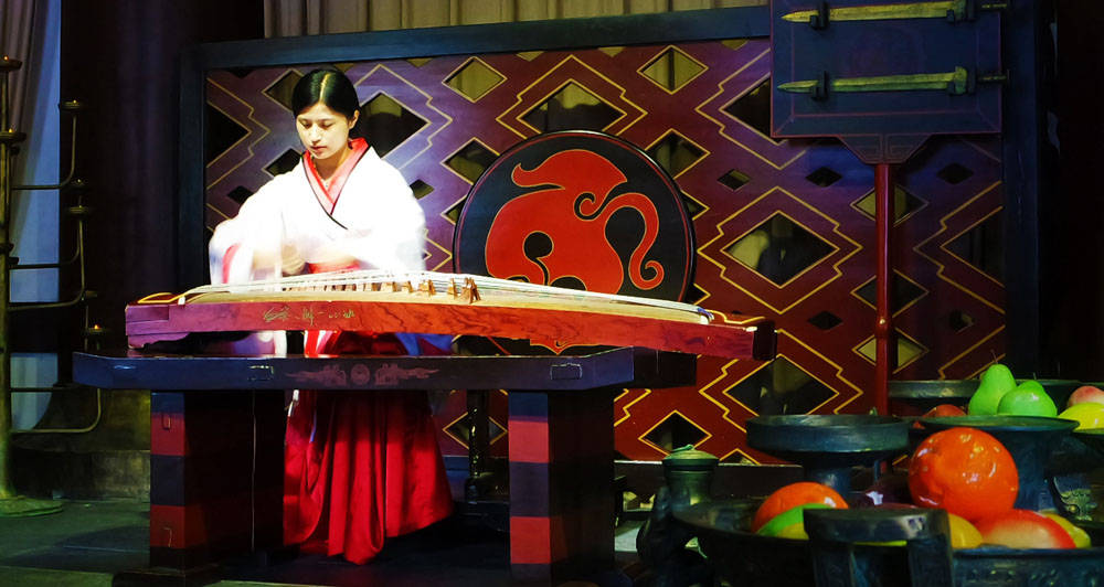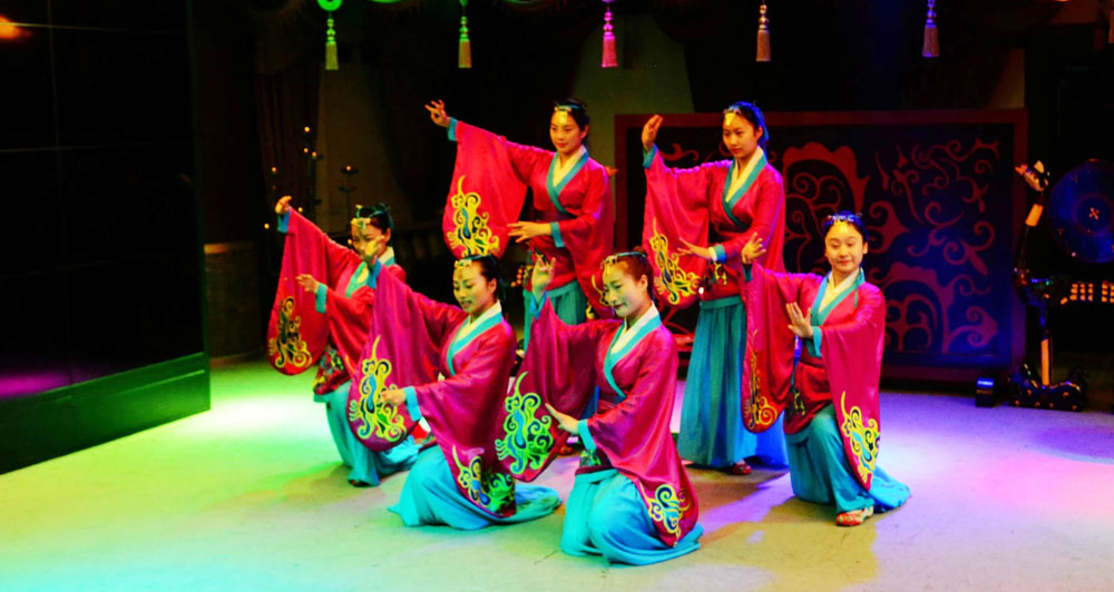 文化演藝是文化產業體系中極具創意性質和輻射拉動作用的的核心產業之一。《楚漢舞蹈》依托宿遷項王故里景區策劃運營,漢代乃禮儀之邦,楚漢時期的琵琶曲也為之盛名,舞蹈由十名女舞者身著漢代時期服裝,在琵琶古樂的背景下,運用民族舞漢代時期典型的風格特色,來尋求漢代禮儀之邦的文化場景。