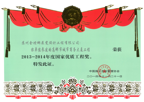 榮獲第一個國家優(yōu)質(zhì)工程獎。