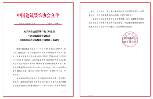 公司主編的首部CBDA博物館裝飾規(guī)程《博物館室內(nèi)裝飾裝修技術(shù)規(guī)程》發(fā)布。