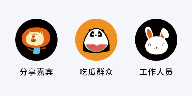 參與活動的人員身份分三種:吃瓜群眾、分享嘉賓、工作人員。