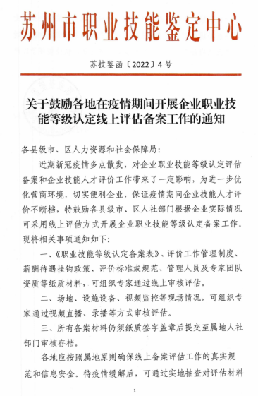 近日,蘇州工業(yè)園區(qū)人力資源和社會保障局公示了《2022年第一季度蘇州工業(yè)園區(qū)新增技能等級認定企業(yè)目錄》。 蘇州金螳螂文化發(fā)展股份有限公司申報的“室內(nèi)裝飾設(shè)計師三級(4-08-08-07)”技能等級認定獲得批準,將按照國家職業(yè)技能標準開展培訓以及證書授予工作。 3月31日,蘇州市職業(yè)技能鑒定中心發(fā)布了《關(guān)于鼓勵各地在疫情期間開展企業(yè)職業(yè)技能等級認定線上評估備案工作的通知》。 《通知》倡導各縣級市、區(qū)人社部門根據(jù)企業(yè)實際情況采取線上評估的方式開展職業(yè)技能等級認定備案工作,通過專家線上審核制度材料、在線評估現(xiàn)場情況,幫助企業(yè)解決疫情期間備案需求,助力企業(yè)技能人才隊伍建設(shè)。 截至目前,蘇州已通過線上備案模式完成了包括蘇州金螳螂文化發(fā)展股份有限公司在內(nèi)的17家企業(yè)11個職業(yè)(工種)的評估工作。 企業(yè)職業(yè)技能等級認定線上評估:專家評審 金螳螂文化線上評估過程:工作制度介紹 金螳螂文化線上評估過程:實地審核 多年來,金螳螂文化始終致力于打造“學習的金螳螂文化”,通過傳幫帶、主題講座、現(xiàn)場考察、以賽代訓等豐富的形式,為員工提供“在工作中學習、不斷超越自我”的成長平臺,愿與有情懷、敢擔當、懂感恩的奮斗者共創(chuàng)共贏。