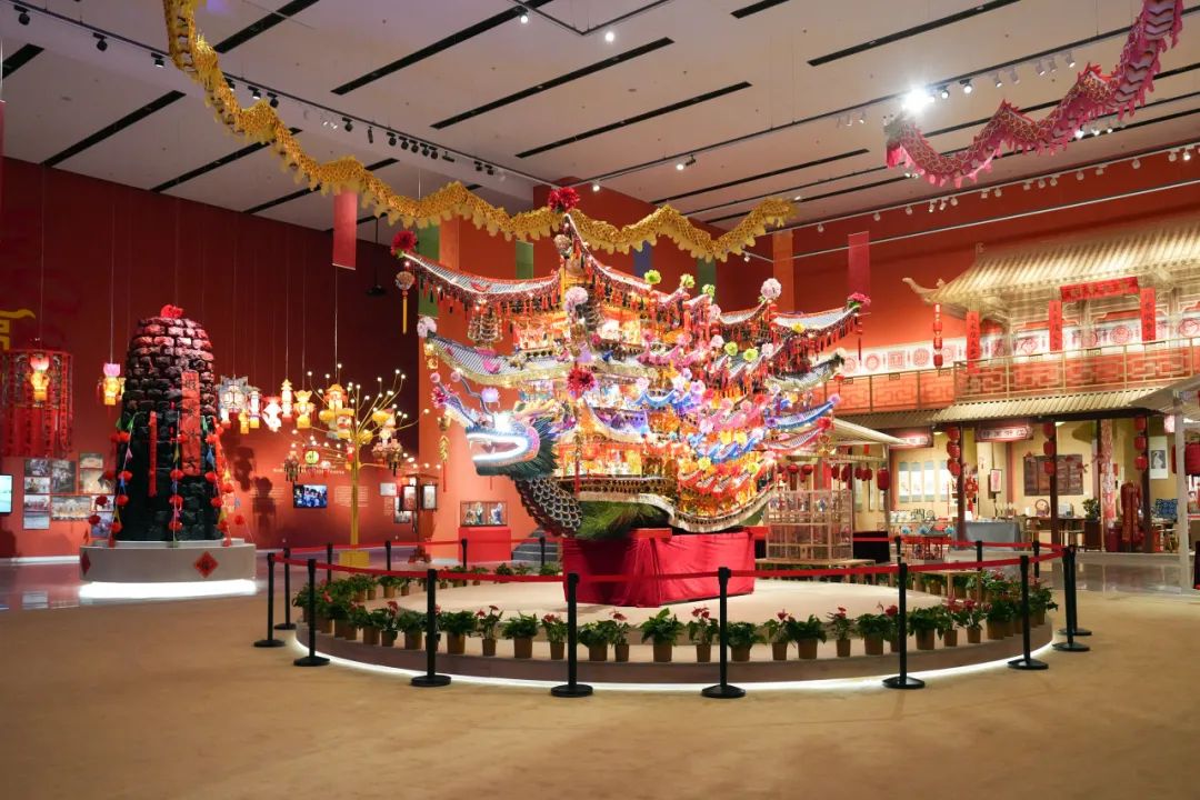展覽時間 2024年12月21日至2025年3月2日 展覽地點 中國工藝美術館 中國非物質文化遺產館一層1、2展廳 主辦單位 中國非物質文化遺產館 協辦單位 各省、自治區、直轄市文化和旅游廳(局),新疆生產建設兵團文化體育廣電和旅游局 實施單位 蘇州金螳螂文化發展股份有限公司 春節是中華民族最隆重盛大的傳統節日,在新年開篇之際,以濃墨重彩之筆,描繪出生機勃發、萬象更新的生活圖景,展現中華文明的蓬勃精神與美好愿景。 2024年12月,“春節——中國人慶祝傳統新年的社會實踐”列入聯合國教科文組織人類非物質文化遺產代表作名錄。 △ 12月4日,在巴拉圭亞松森聯合國教科文組織保護非物質文化遺產政府間委員會第19屆常會評審現場,大屏幕播放春節宣傳視頻 值此佳際,中國非物質文化遺產館舉辦春節主題展,通過藝術化呈現與春節相關的非物質文化遺產代表性項目,讓您無論來自哪里,都能在此感受到家鄉的年味,以春節展現出中華民族可信、可愛、可敬的形象。 △ 展廳布展花絮 素材來源:中國工美館 中國非遺館